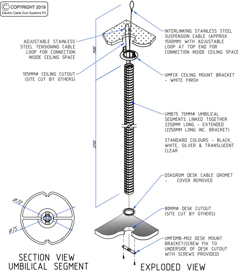 CAT NO. UMF2200DM Umbilical On (Above) Desk Mount